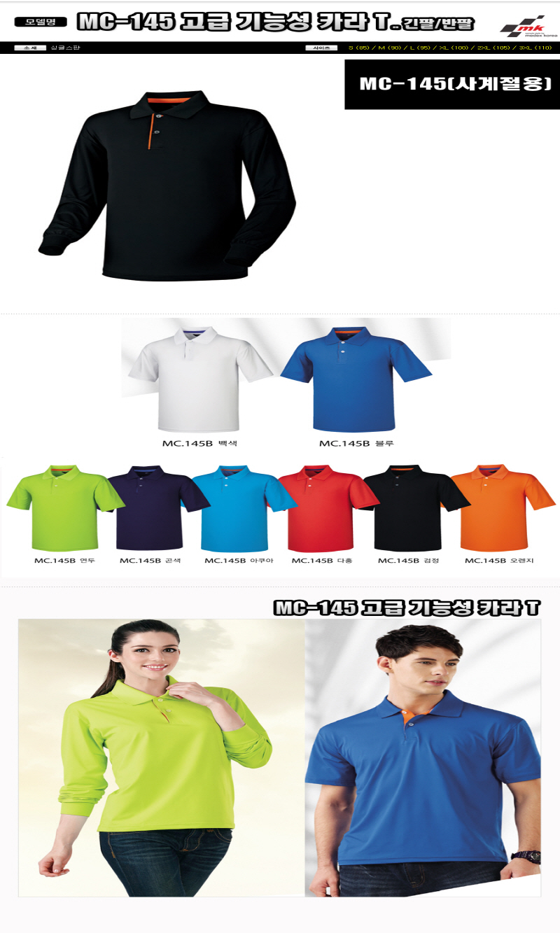 | 기타사항 | •Size : S, M, L, XL, 2XL, 3XL •소재 : 싱글스판 ※단가변동 있을 수 있습니다. 제품 색상은 인쇄된 것이므로 실제 제품과 다소 차이가 있을 수 있습니다. MC-145 |