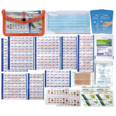 | 기타사항 | 표준밴드8P, 대형밴드2P, 사각밴드2P,미니밴드5P, 손끝밴드2P, 관절밴드2P, 방수밴드2P, 칼라밴드4P, 멸균거즈5P 1장,드래싱밴드1P, 알콜솜4P, 10P면봉, 손소독제2P, 1회용마스크 ※밴드이미지는 변경될수있음 |