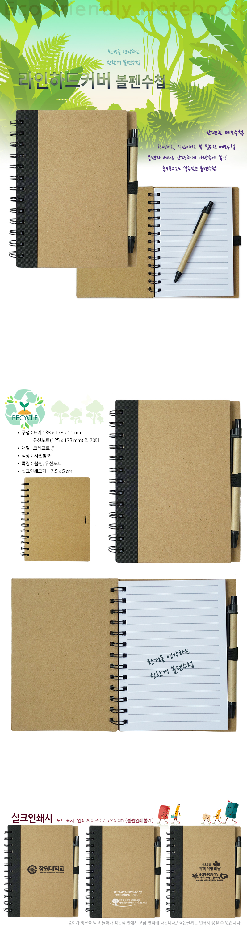 | 기타사항 | •138x178x11mm/기본 200개 •유선노트 약70매/OPP ※ 기본수량 미만시 인쇄비 추가 |